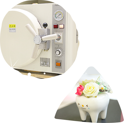 滅菌体制を整えてタービンの使いまわしや、不衛生な状態での治療は一切行いません。院内の空気感染も予防できる空気清浄機も導入しています。