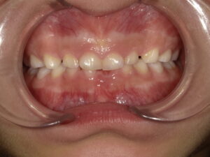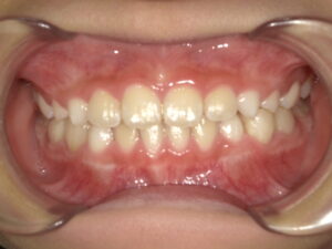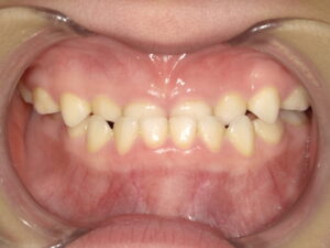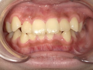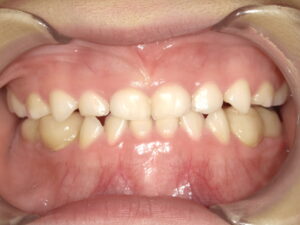 前歯が交叉してしまってかみ合わせの中心がずれています。