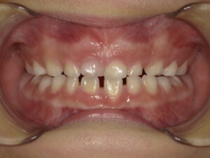 上あごが大きくなってきたので上の歯が生え変わり始めています。