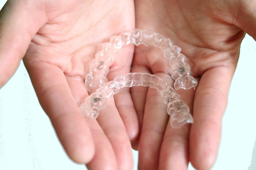 毎食後の歯磨きはもちろん、デンタルフロスや歯間ブラシも併用するようにして、就寝前のケアは特に丁寧に行いましょう。マウスピース自体も、専用の洗浄剤で清潔に保つことが大切です。