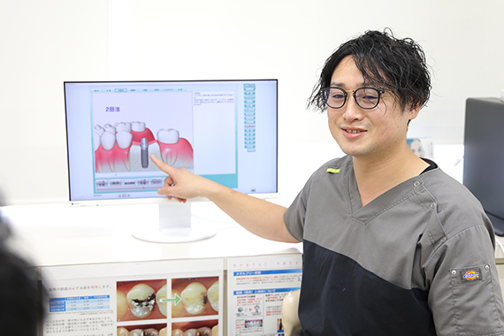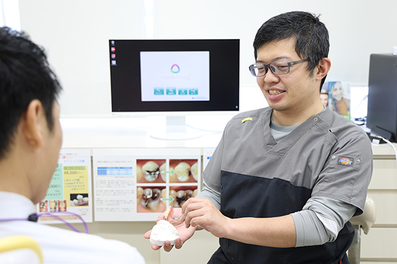 まずは患者さんの口腔内の状態を確認いたします。歯科医師によるヒアリングなども合わせて行います。