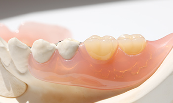 留め具(クラスプ)がない部分入れ歯をノンクラスプデンチャーと言います。一般的な部分入れ歯は金属製の留め具で歯に固定するため歯がダメージを受けやすく、見た目の目立ちやすさが気になるかたもいらっしゃいます。ノンクラスプデンチャーは、これらの問題点を改善できる部分入れ歯となります。