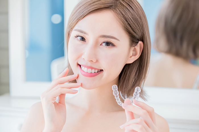 一昔前までは歯列矯正と言えばブラケット矯正が一般的でしたが、近年ではマウスピースを用いた方法も増えつつあります。無色透明であるため目立ちにくい、痛みが出にくい、通院間隔が長いなど、多くのメリットがあります。当院では、世界的に多くの実績を持つインビザラインを採用しています。歯並びでお悩みのかたは、ぜひお気軽にご相談ください。