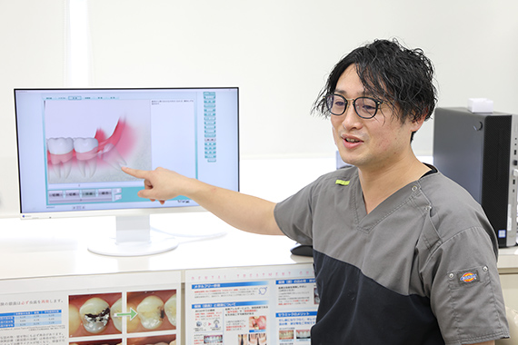 デジタルシミュレーション動画を見ながら、治療計画を説明します。矯正内容や期間、料金、ブラケット矯正・インビザライン矯正の適性をお伝えした後、患者さんのご希望などをお伺いして、治療計画を調整いたします。