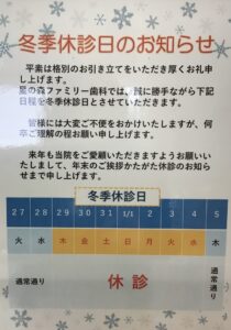 星の森ファミリー歯科では、誠に勝手ながら下記日程を冬季休診日とさせていただきます。